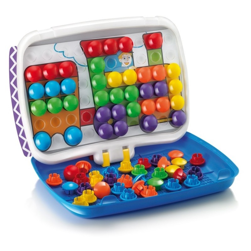 Dvě hry v jednom velkém multifunkčním kufříku: z jedné strany mozaika s šesti oboustrannými předlohami, určená dětem již od 2 let, rozvíjející vizuálně-motorickou koordinaci, jemnou motoriku a tvořivé myšlení,